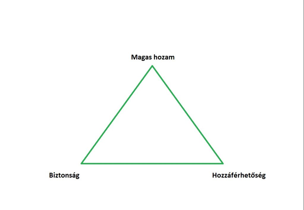 Legyen befektetésünk egy képzeletbeli X, melyet a háromszögön belül vagy annak valamely oldaltengelyén a sarkok között helyezünk el, így megérthetjük a pénzpiaci termékek jellemzőit.